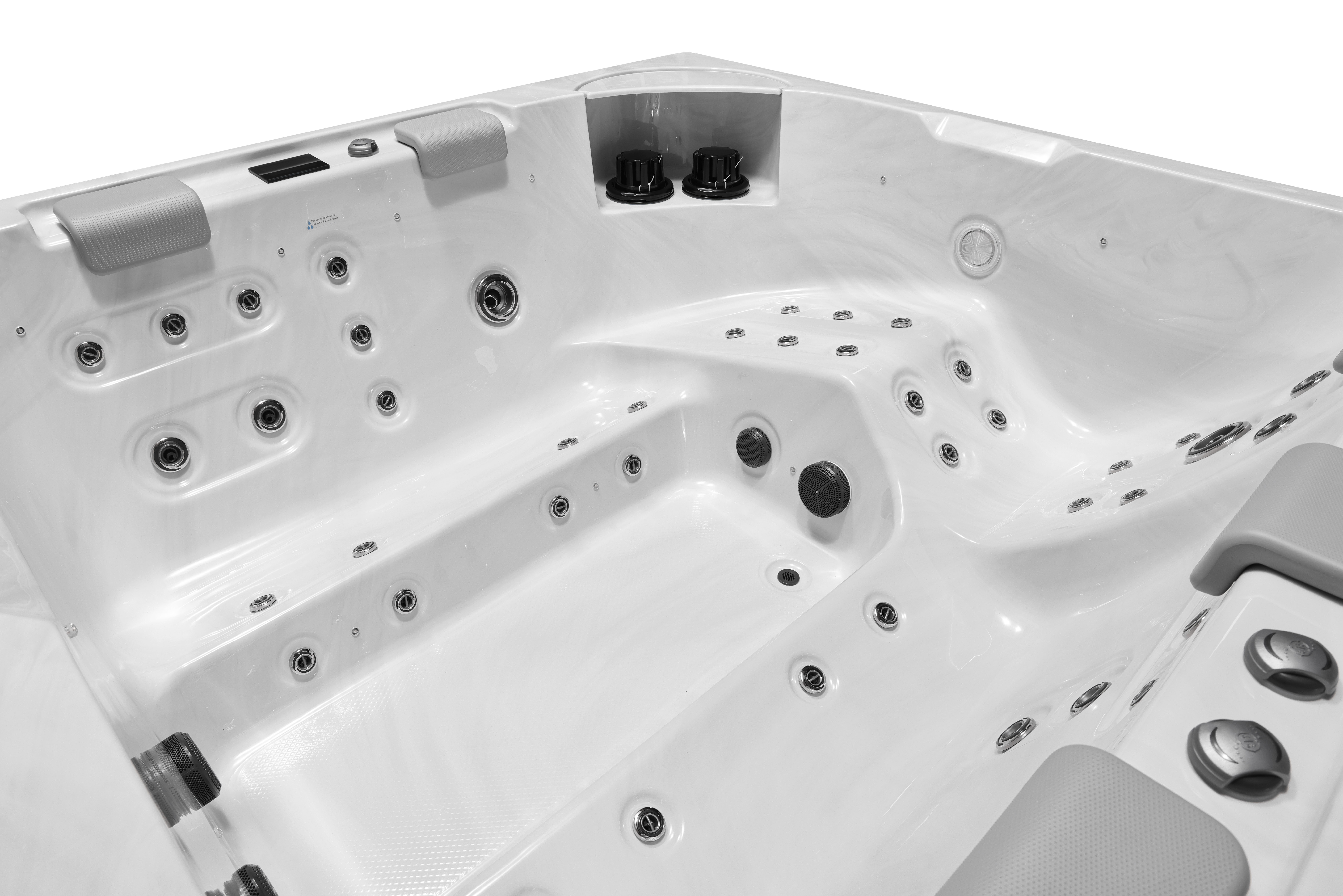 Nari — это полностью готовое решение с продуманной эргономикой и невероятно эффективной системой массажа. 56 воздушно-водяных форсунок обеспечивают максимальный комфорт и глубокое расслабление всех групп мышц, создавая идеальные условия для восстановления сил и полноценного отдыха в компании до пяти человек.