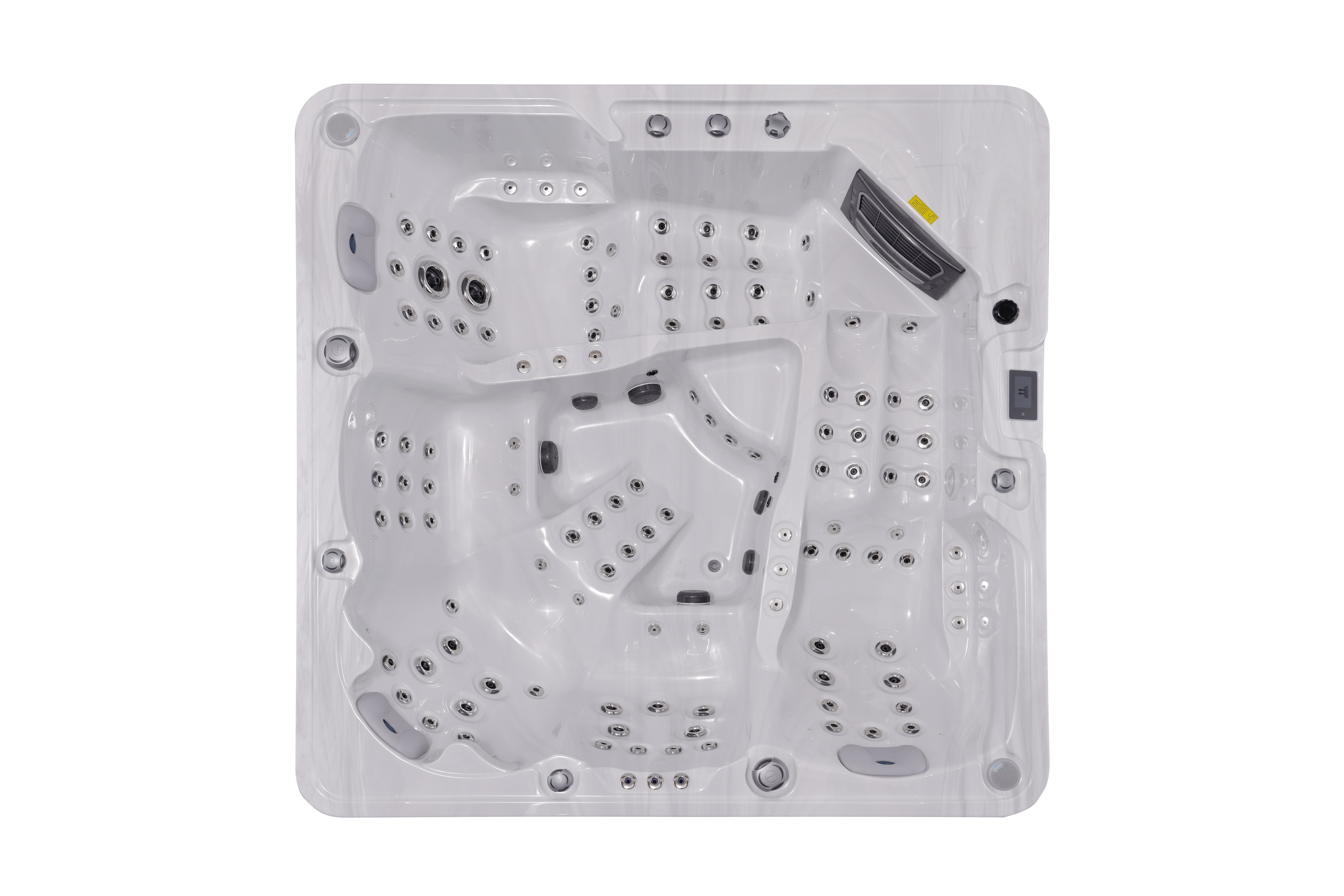 NordicSpa Tyur с размером чаши 2,25 x 2,25 м идеально подходит для установки как в помещении, так и на улице. Просторная квадратная чаша с тремя эргономичными подголовниками комфортно вмещает до пяти человек, создавая королевские условия для полноценного отдыха и общения.
